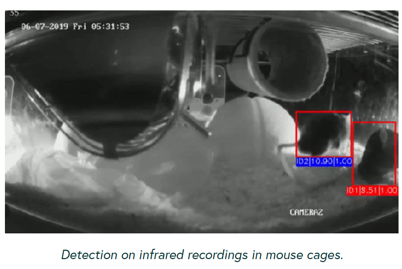 프랑스의 글로벌 제약회사 사노피는 쥐의 이상행동을 검출하기 위해 객체 인식 AI를 사용합니다. AI는 쥐의 활동 및 정지 기간과 먹고 마시는 시간 측정합니다. 그리고 이러한 정보를 기반으로 쥐의 건강 상태가 좋은지, 급속도로 악화되고 있는지 알려줍니다. 사노피는 쥐를 감시하는 비용을 아껴 연구 개발에 투자할 수 있게 되었을 것입니다.