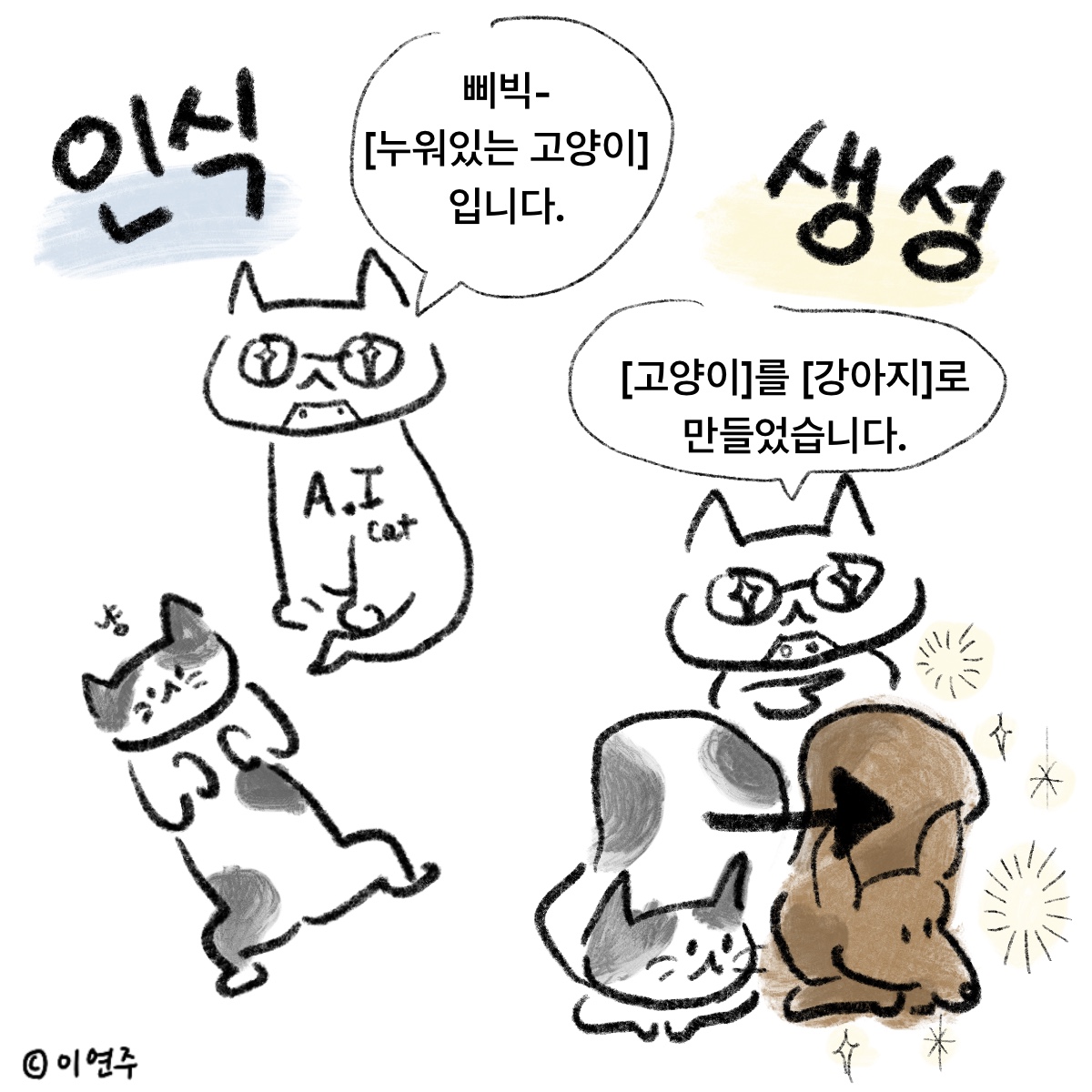 시각(Vision) AI는 인식과 생성의 두 가지 방향으로 발전하고 있습니다. 때마침 AI의 모든 것을 알고 있는 AI캣이 시각 AI의 이미지 인식과 생성 기술을 쉽게 알려주네요.