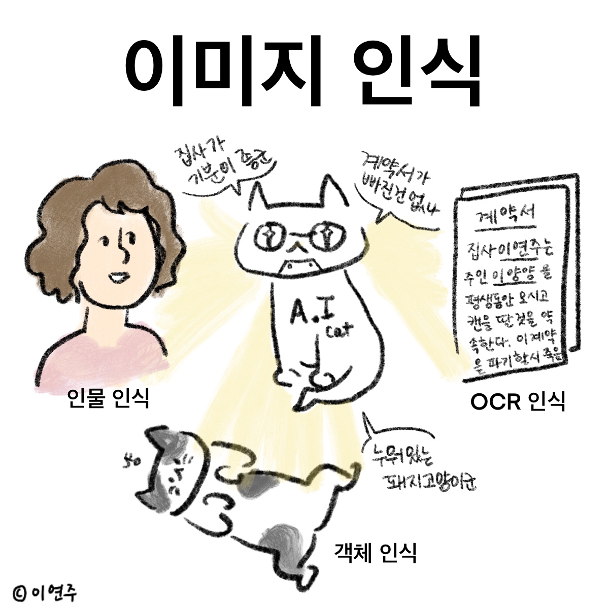 이미지 인식 AI는 인물, 객체, 그리고 글자(텍스트)를 인식합니다. 각각의 AI에 대해 더 자세히 알아볼까요?