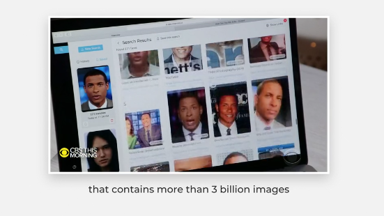 - 1) 일반인 사진 30억 개를 인터넷, 범죄자 DB 등에서 수집해 누구든 인식할 수 있는 얼굴 인식 AI를 개발했습니다.