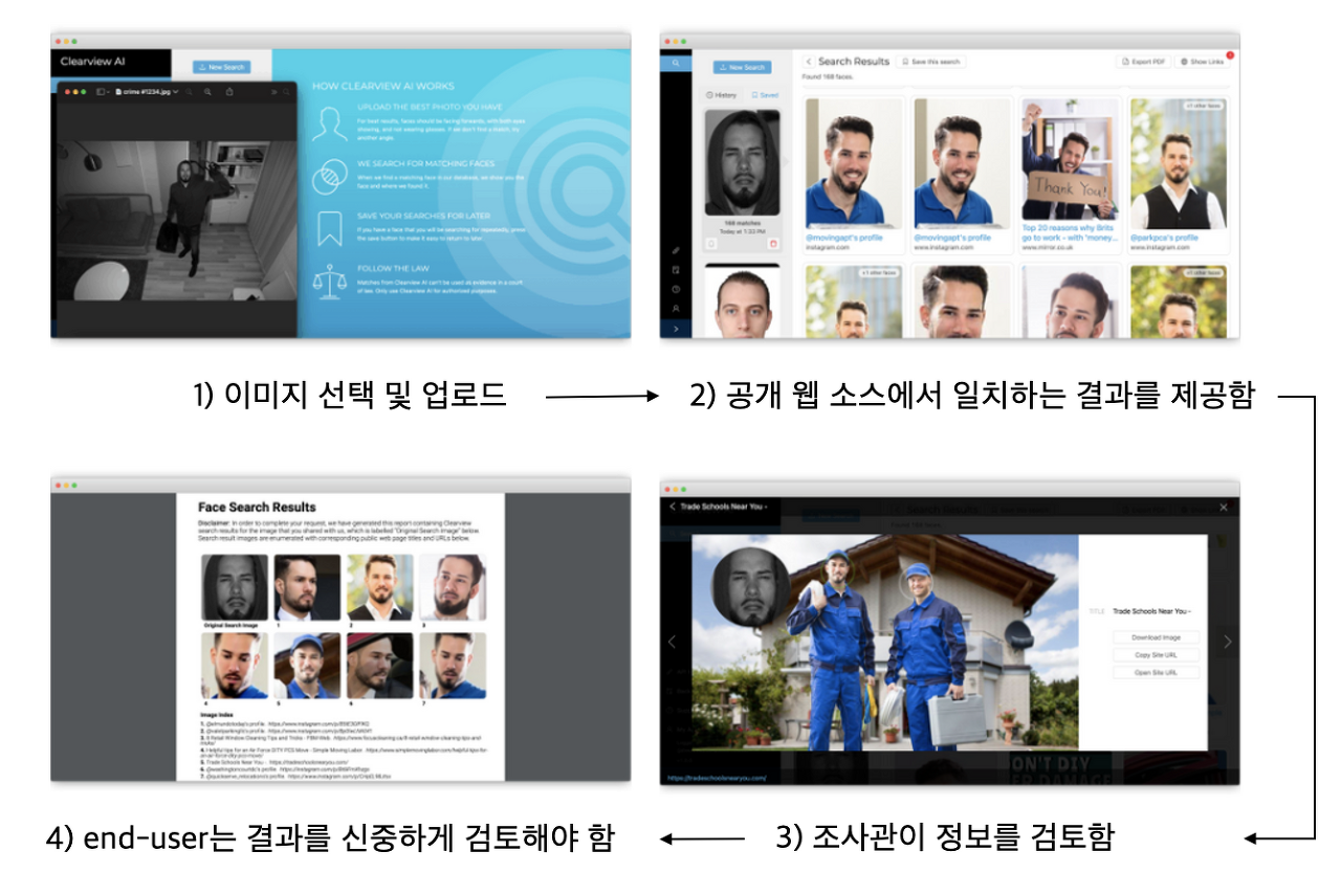 수사 기관에서 Clearview AI의 서비스를 사용하는 과정을 조금 더 자세하게 풀자면 이렇습니다.