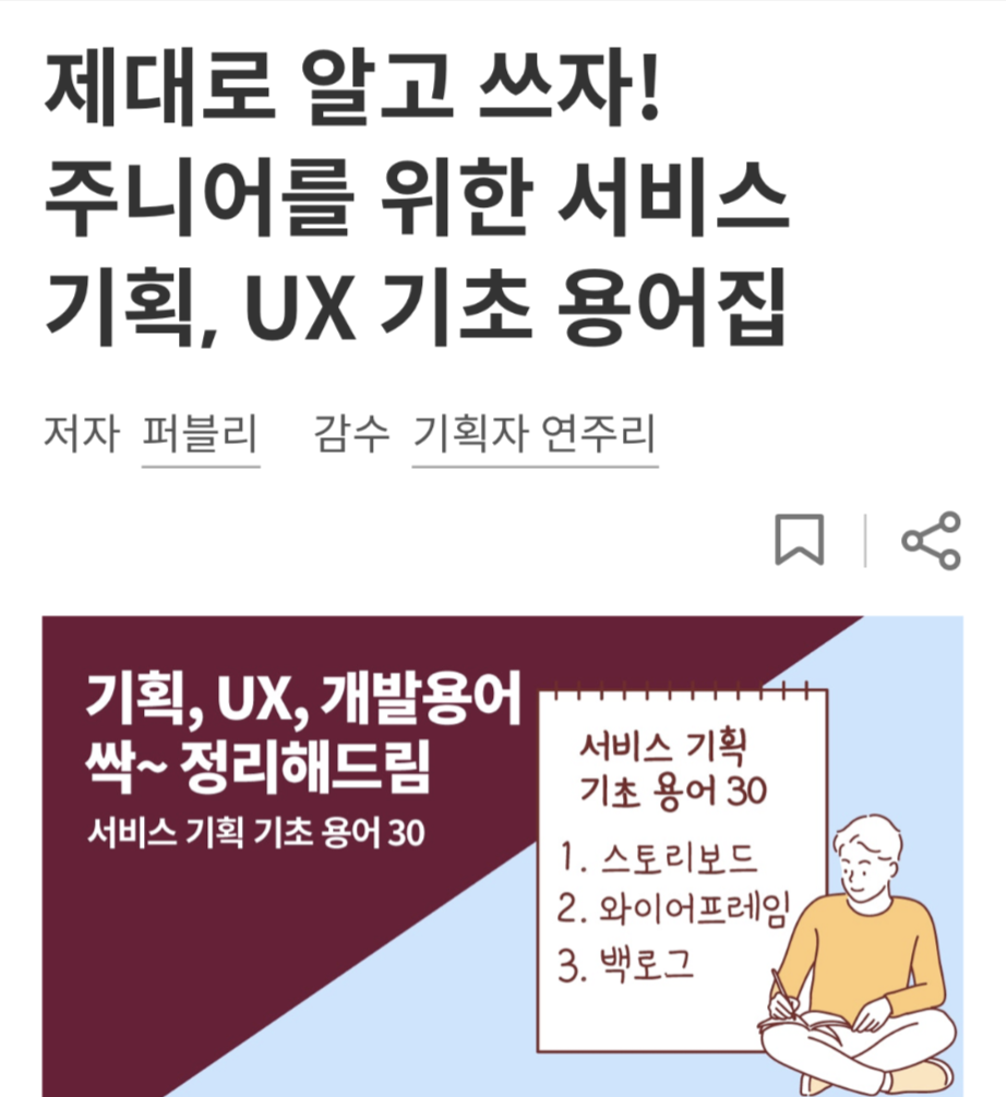 "제대로 알고 쓰자! 주니어를 위한 서비스 기획, UX 기초 용어집" 콘텐츠 검수를 맡았습니다. 아티클 작성 중에 검수 요청을 받게 되어 UX 기초 용어집에 관한 몇 가지 의견을 드렸습니다. 만화로 쉽게 볼 수 있는 좋은 콘텐츠입니다.