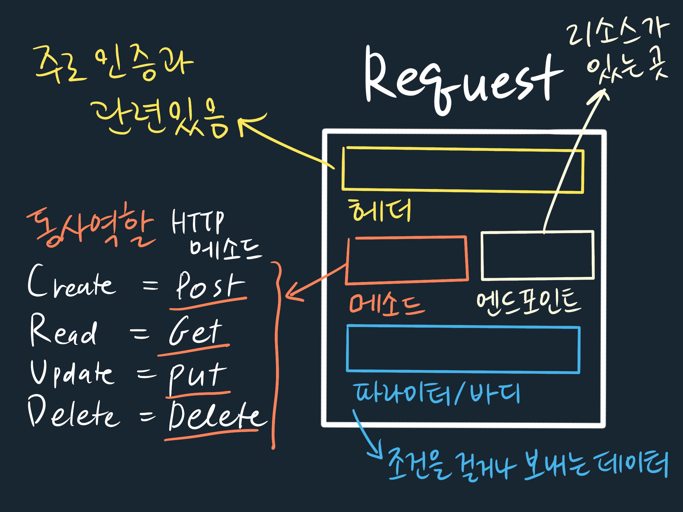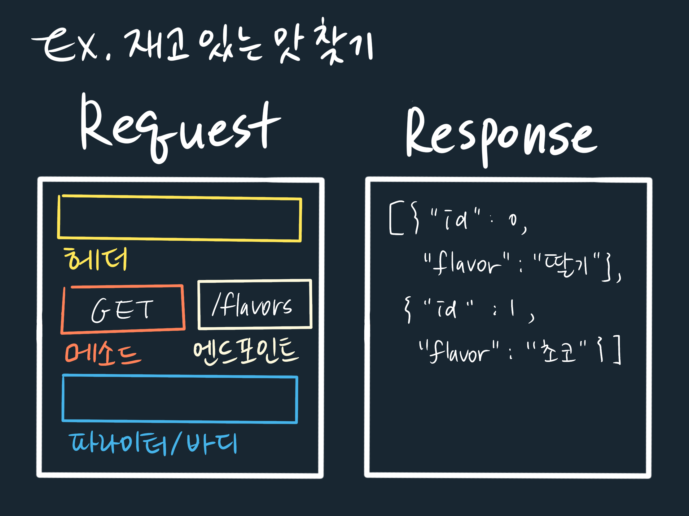 API의 두 축인 요청(request)과 응답(response)의 구조를 조금 더 쪼개서 볼까요.