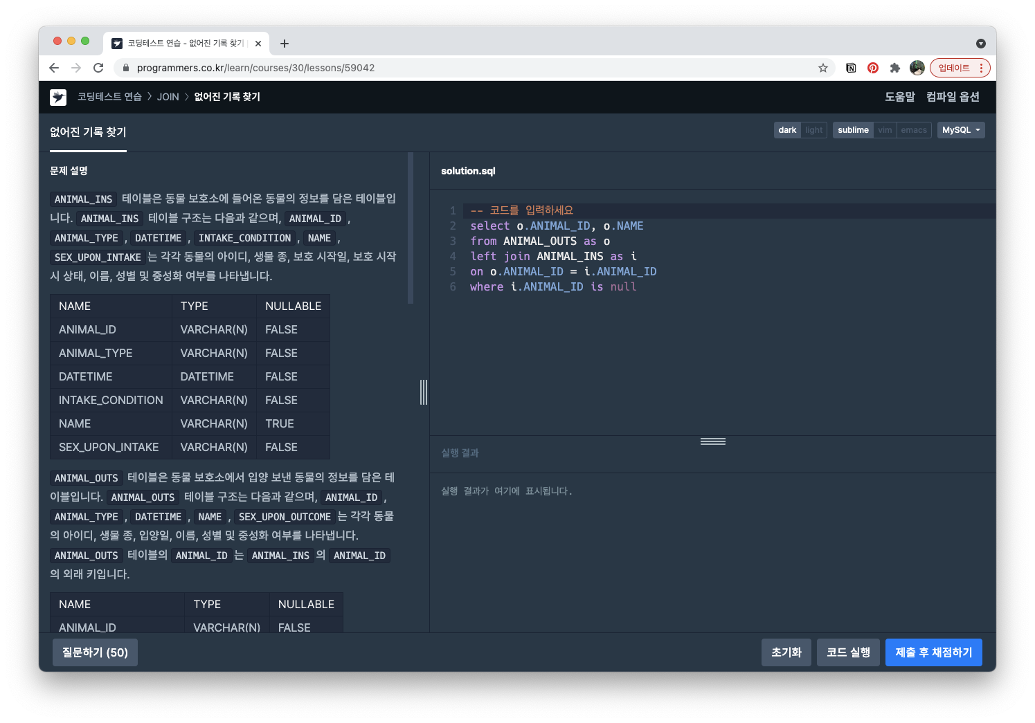 SQL은 그래도 한 번 공부했고 다른 언어보다 쉬우니까 풀어보자고 마음을 먹었다.