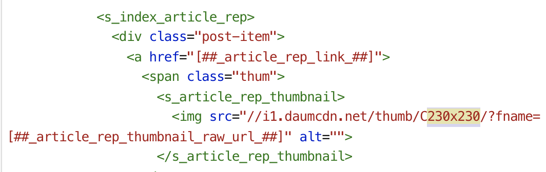 <span class="thum"> 아래의 <img src> 링크를 보면 원래는 C230x300으로 나온다.