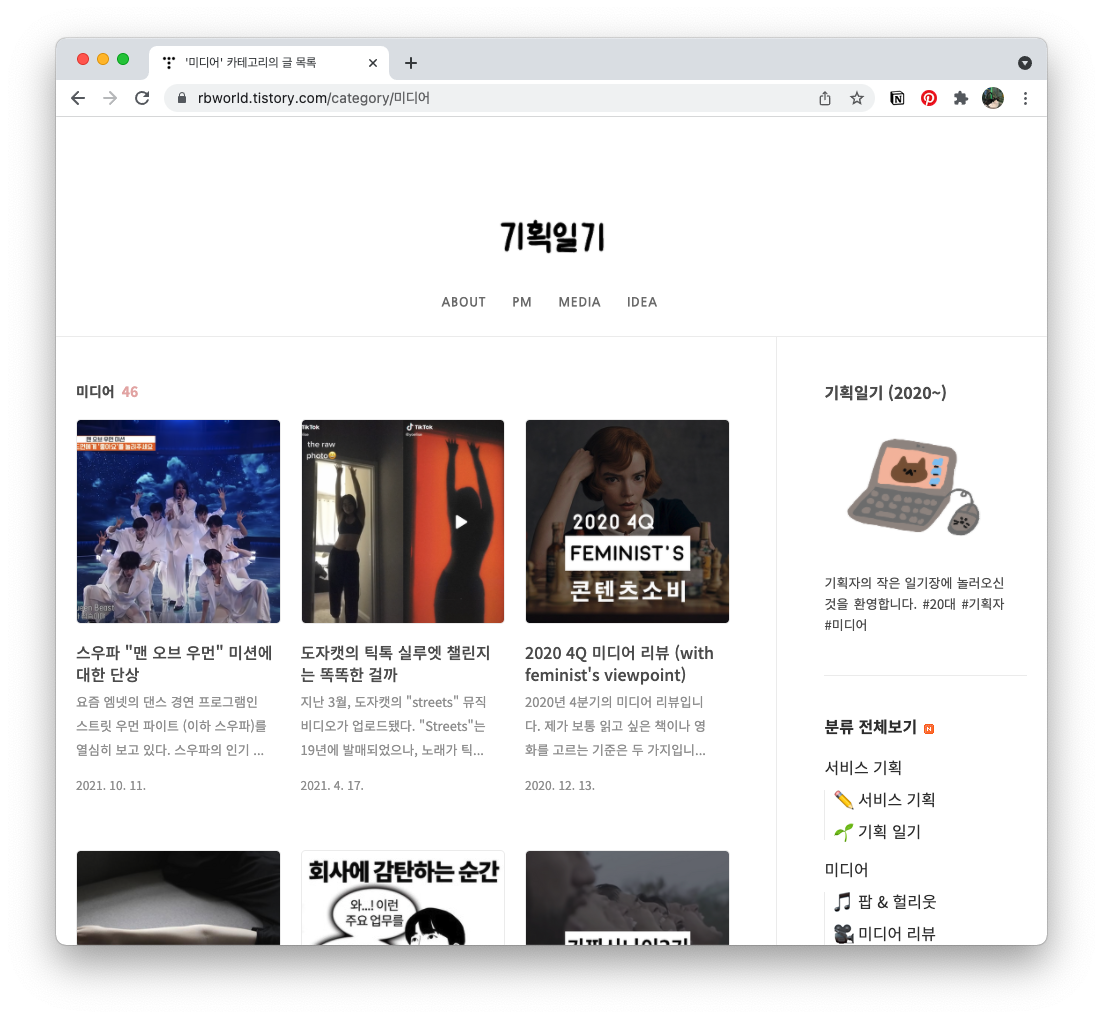 블로그 성격 상 기획에 치중된 이야기를 많이 하고 있기에 콘텐츠의 성격을 반영하고자 했다.