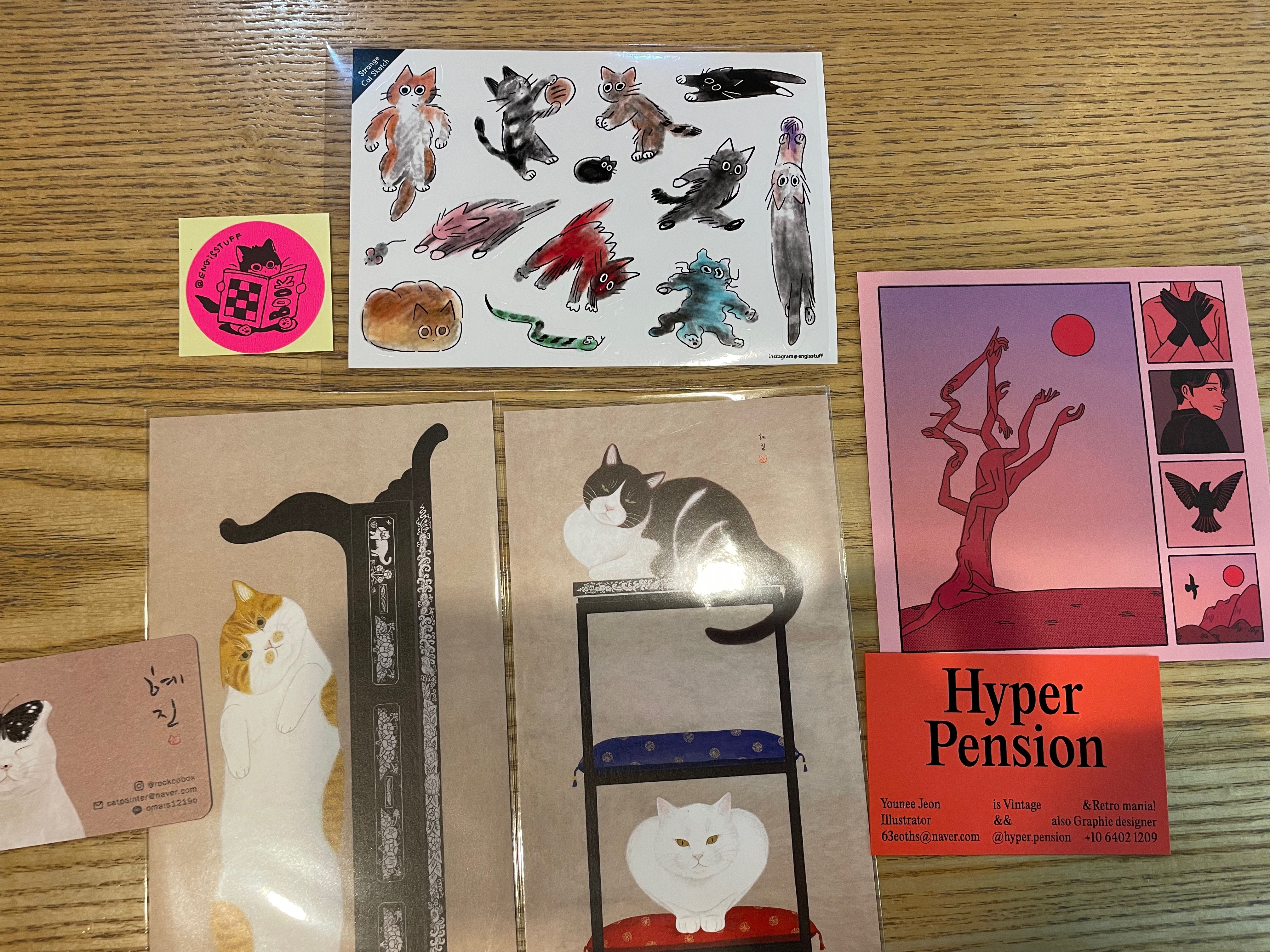 가장 마음에 들었던 작가님은 조선시대 고양이를 그린 "혜진" 님이었다. 한국적인 색채와 귀여운 고양이가 한 곳에 있는 그림은 보기에도 재미있고 개성도 강하다.