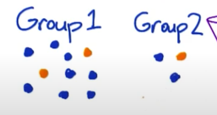- 문제점: 아래 이미지를 참고해볼까요? 파란색은 홈페이지 접속 건수이고, 노란색은 홈페이지에서 버튼을 클릭한 건수입니다. Group 1은 홈페이지 접속 건수가 더 많기 때문에 버튼 클릭 건수도 더 많습니다. Group 2의 클릭 건수는 낮지만, 클릭 비율이 더 높습니다. 접속 건수가 많아서 클릭 건수가 많은 경우는 버튼의 효과로 인해 클릭 건수가 많아진 것이 아니므로 클릭 건수가 아닌 전환율을 측정합니다.