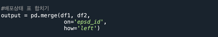 - pandas의 merge 사용 시, 두 테이블의 key가 되는 열 이름만 같아도 바로 합칠 수 있음