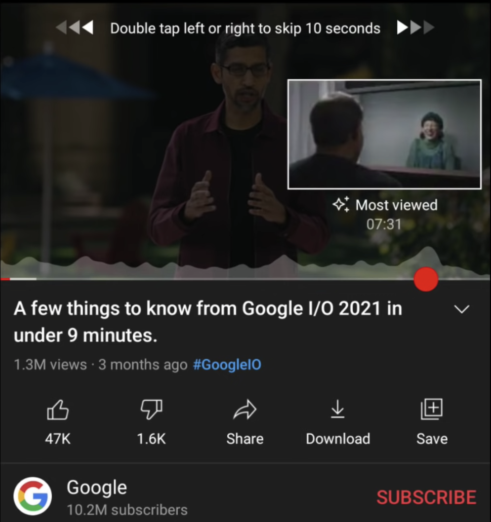장점은 초반에 영상이 재미없어서 이탈하는 시청자를 조금이라도 더 잡아둘 수 있다는 것입니다. 예를 들어, 해당 영상은 초반에 약간만 지루함을 견디면 후반으로 가서 재미있게 시청할 수 있다는 단서를 얻을 수도 있고, 지루해서 도저히 못 견디겠다면 재생바를 뒤로 이동해서 most viewed 장면만 시청해도 됩니다. 해당 기능이 유효하게 작동한다면 전반적인 시청 시간이 증가할 것으로 기대됩니다.