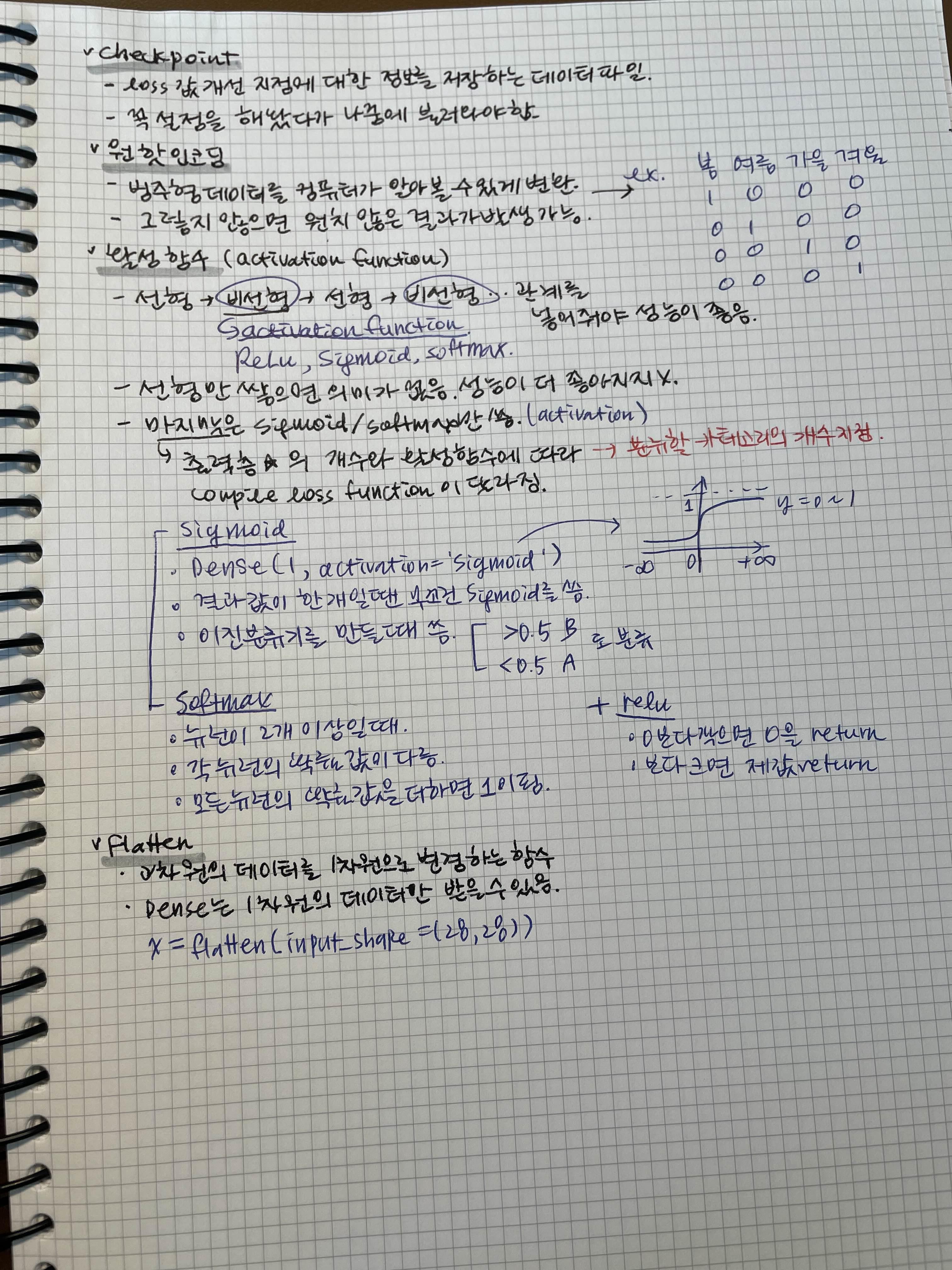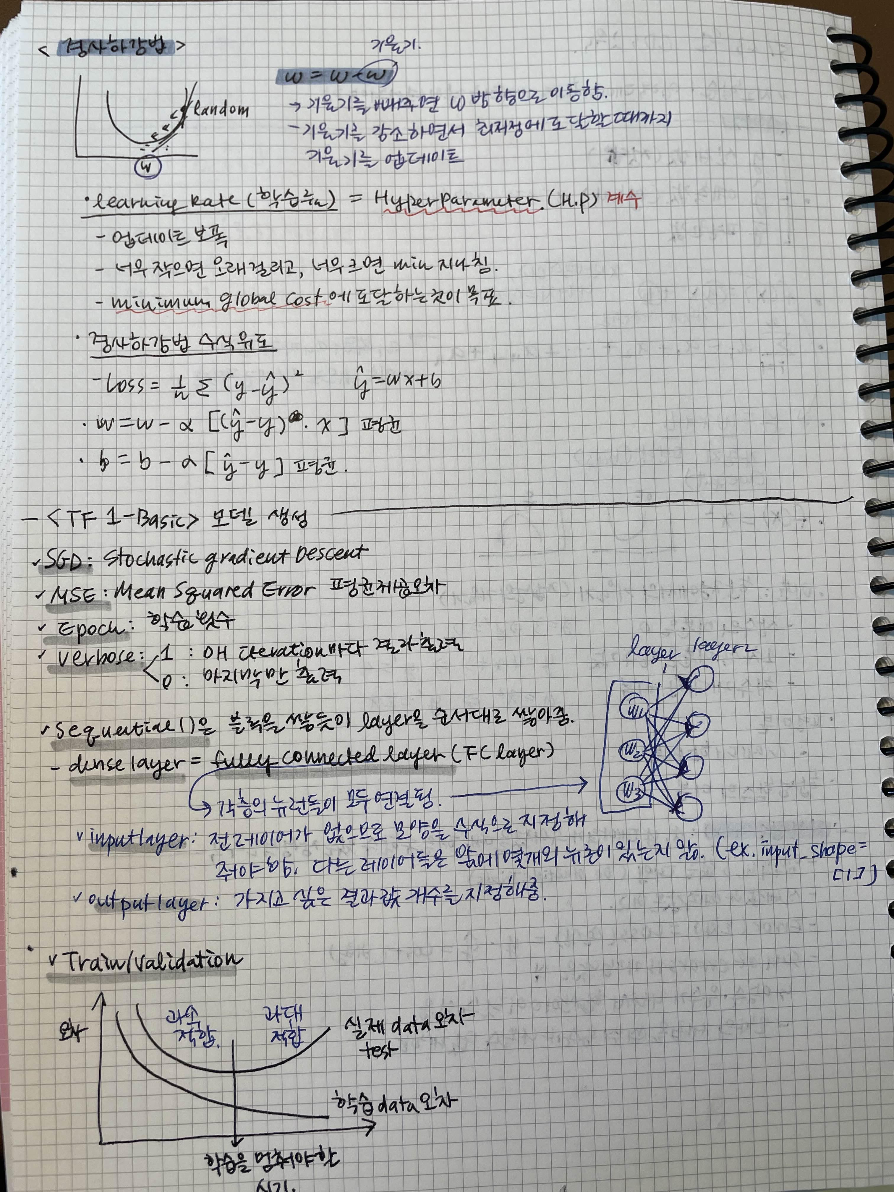 - 딥러닝 프로세스: 데이터 전처리 > 모델 생성 (모델 정의, compile) > 모델 학습 (fit) > 모델 평가 (evaluate) > 모델 예측