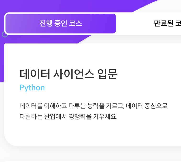 코드잇 "데이터 사이언스 입문" 과정을 수강 중이다.