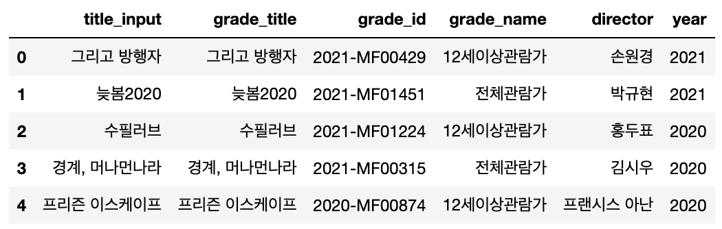 df = pd.DataFrame(datas, columns=['title_input', 'grade_title', 'grade_id', 'grade_name', 'director', 'year'])