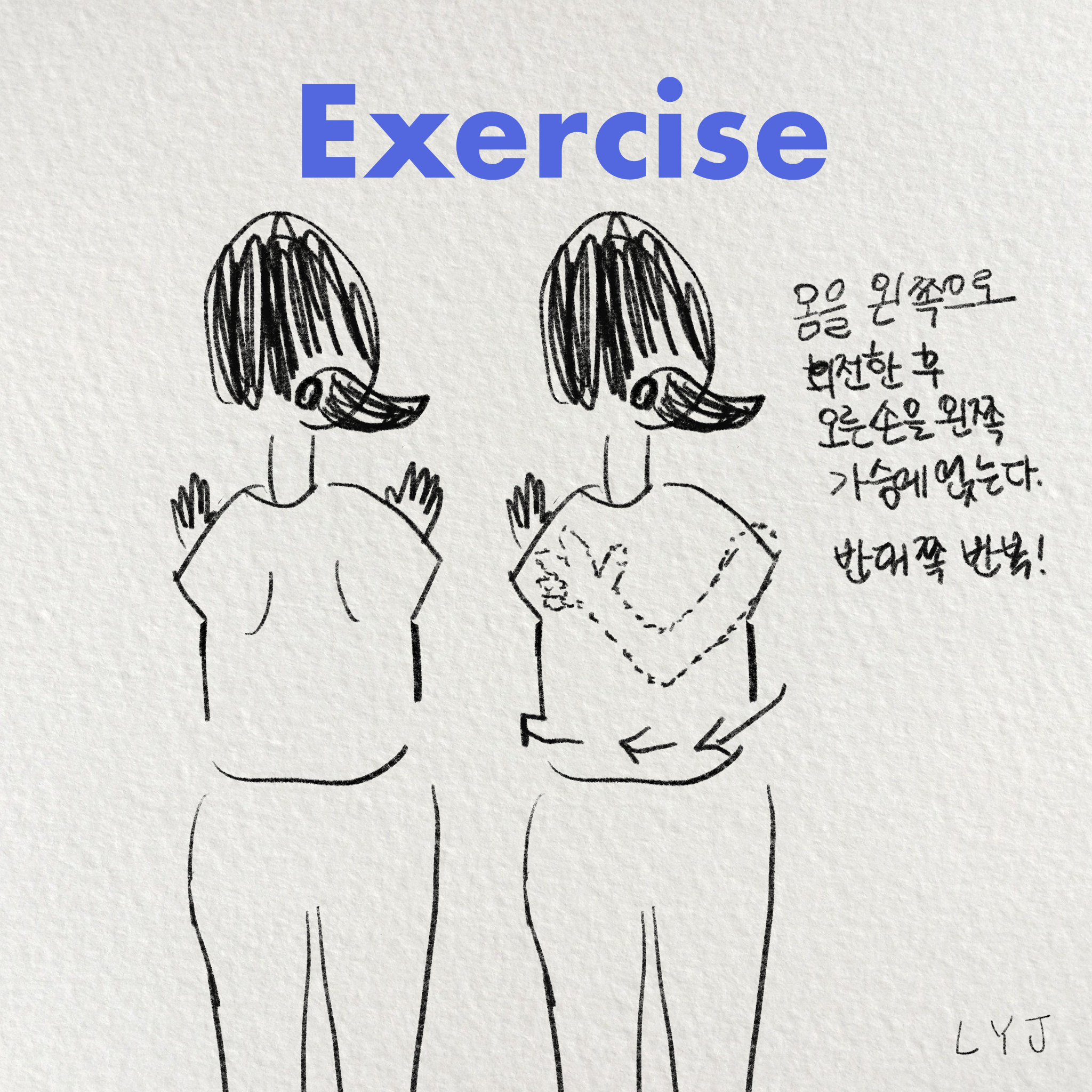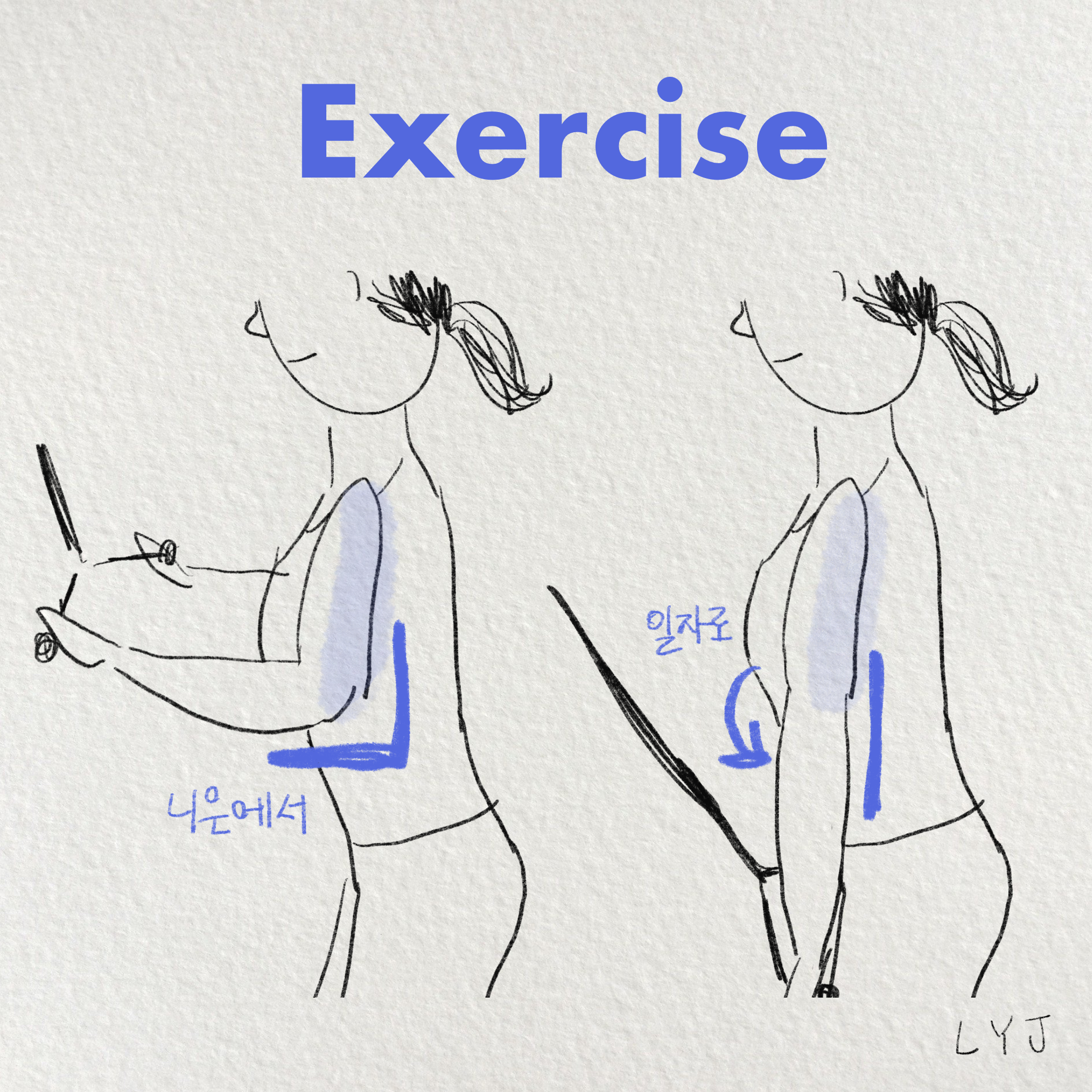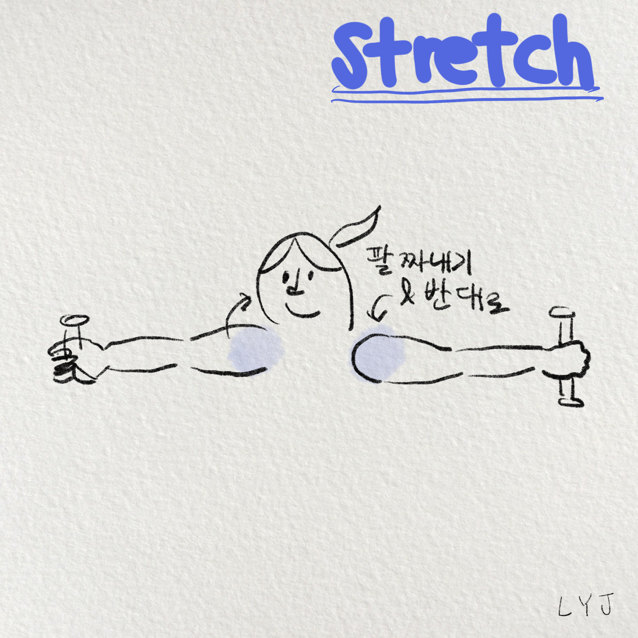 거울을 봤을 때 손바닥이 보이게 한 번, 손날이 보이게 한 번 한다. 그림과 달리 무게는 잡지 않고 스트레칭했다.