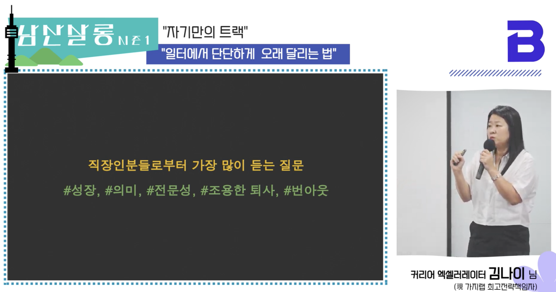 올해 1분기에 김나이 님의 "자기만의 트랙"과 "당신은 더 좋은 회사를 다닐 자격이 있다"라는 책을 읽고 꼭 한 번 만나 뵙고 싶다고 생각했던 터라, 강연이 있다는 공지를 보자마자 바로 참석을 신청했다. 강연 내용을 잊지 않기 위해 내용을 요약해서 정리했다.