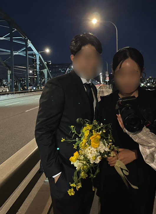 - 꽃도 예쁘고 디자인도 마음에 들었는데, 촬영을 마치고 집에서 꽃병에 꽃을 넣으려는 순간 꽃잎 뒤에 벌레가 다닥다닥 붙은 걸 발견하고 바로 쓰레기통 직행. 조금 아까웠다..ㅠㅠ 촬영 내내 가지고 부케를 가지고 다녔으므로 언제 벌레가 붙었는지는 모름.